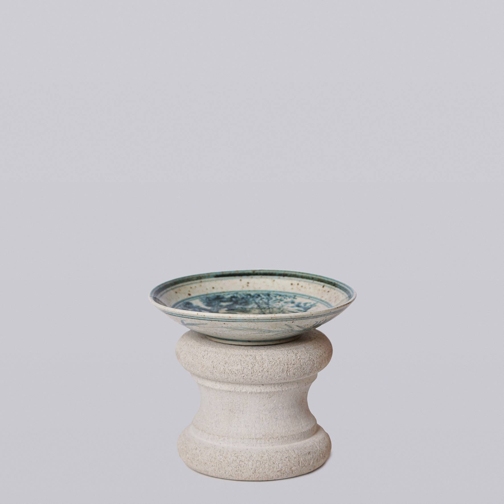 This blue and white porcelain vessels from the antiques markets of Jingdezhen, a town long distinguished by imperial patronage, is a small hand painted shallow bowl with an auspicious three friends motif, depicting pine, plum, and bamboo, 6 3/8" x 1 3/8" Perfect for gifting