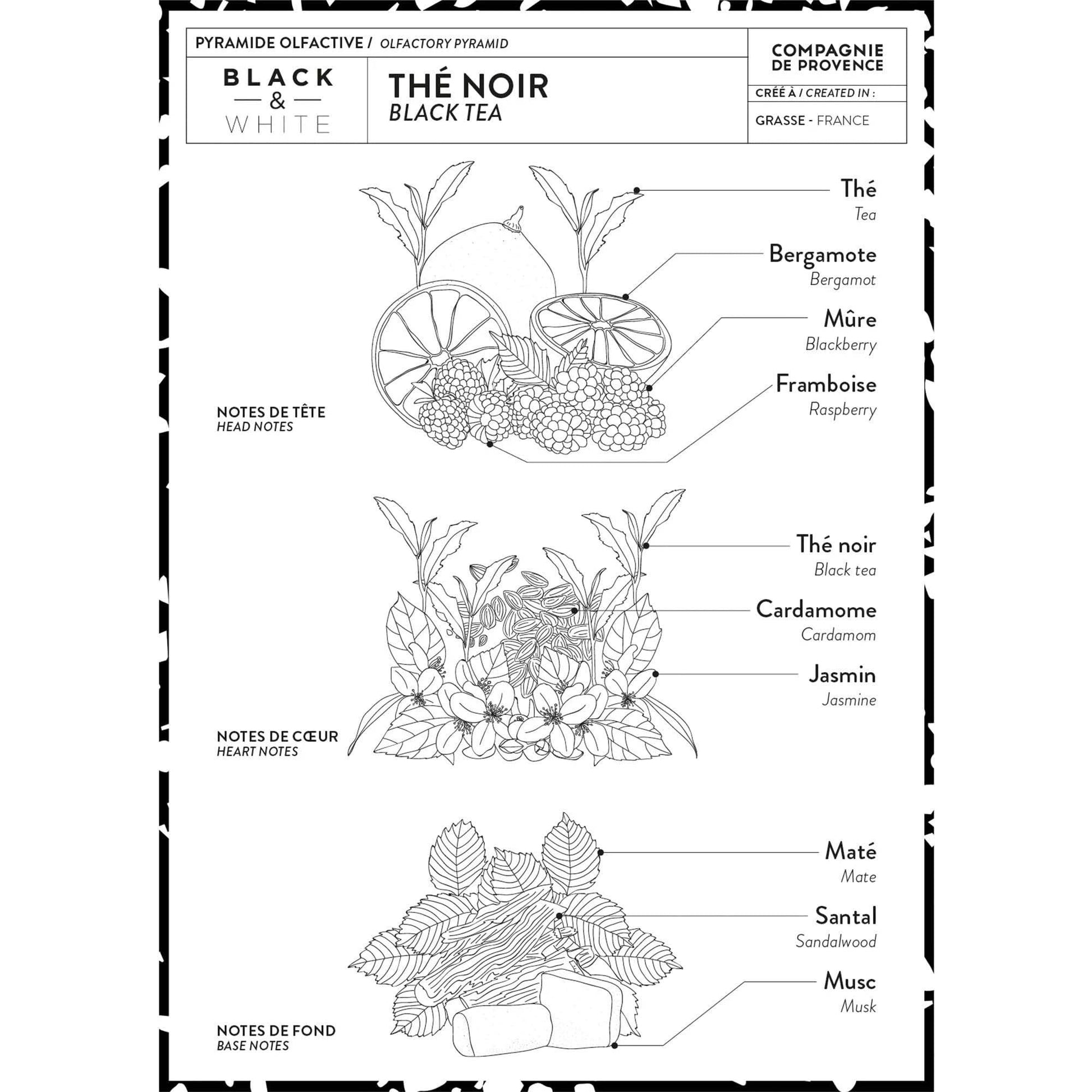 Deep notes of black tea and fruity notes of blackberry come together in its subtle yet powerful scent, created in Grasse.