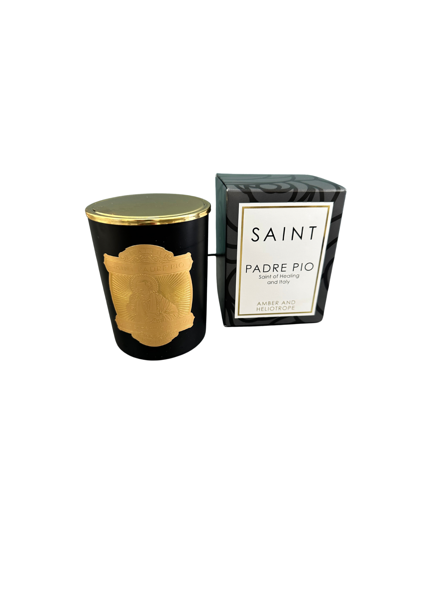 The legacy of Saint Padre Pio is one of marvel and comfort, inspiring a fragrance to match the divine nature of his life. The Padre Pio candle envelopes the senses with angelic notes of Rose Absolute, exotic White Florals and fresh Geranium to create a balanced, uplifting scent. Light this candle as a reminder to live by the words of Padre Pio, "Pray, hope, and don't worry."