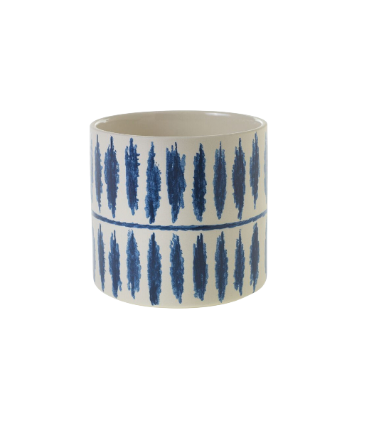 A simple shape and hand-painted design in blue combine in the playful yet modern.